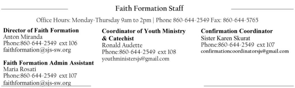 860.644.2411 ext 106 - If you are planning to volunteer this year, please do NOT fill out this form. Please contact our Faith Formation Office.